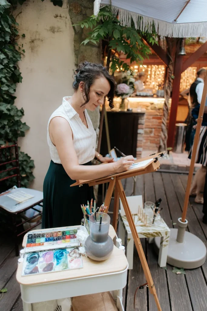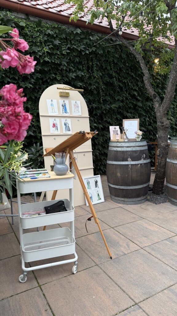 Ak chcete, aby vaša svadba v Modre ponúkla hosťom nielen krásne prostredie, ale aj originálny zážitok, svadobné maľovanie môže byť elegantným doplnkom vášho dňa. Ako svadobný maliar pôsobiaci v Modre aj okolí vytváram portréty hostí a umelecké momenty, ktoré sa stanú originálnou pamiatkou.