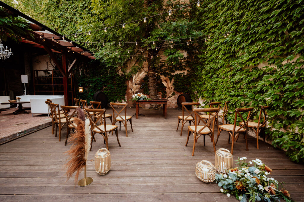 Starý dom patrí medzi obľúbené svadobné miesta v Modre pre páry, ktoré hľadajú komorný a elegantný priestor. Historická architektúra, drevené prvky a útulný exteriér vytvárajú ideálne podmienky pre romantickú svadbu v Modre aj s menším počtom hostí. Navyše ich dekor exteriéru a posedenie ladené do tmavozelených farieb dopĺňa takmer každý druh výzdoby.
